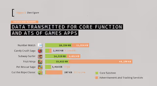 switching from 4G to Wi-Fi reduces emissions by a factor of 5. The issue at stake becomes clear when user bases are taken into account: Games such as Fruit Ninja or Candy Crush have half a billion to a billion downloads. Scaling in this factor sometimes adds up to emissions of hundreds of tons of CO 2 equivalents – i.e., several hundred thousand kilometres by car – that are caused solely by advertisement and tracking.